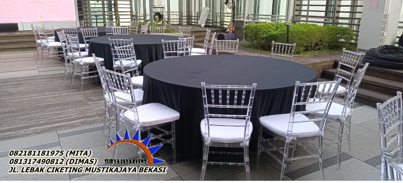 CV. SURYA JAYA EVENT merupakan perusahaan yang bergerak pesat dibidang jasa persewaan alat pesta lengkap termasuk round table dan kursi acrylic dengan kualitas produk terbaik siap kirim jakarta.