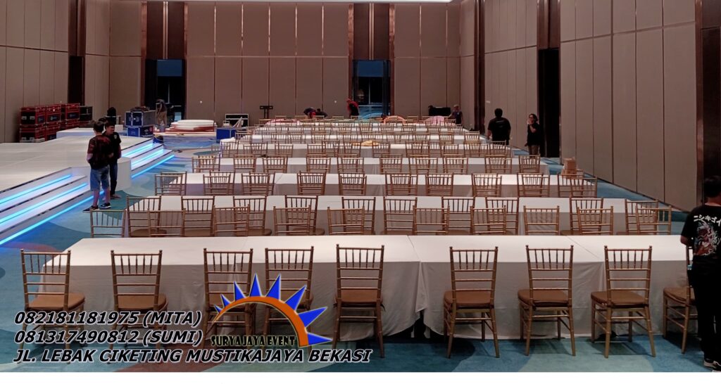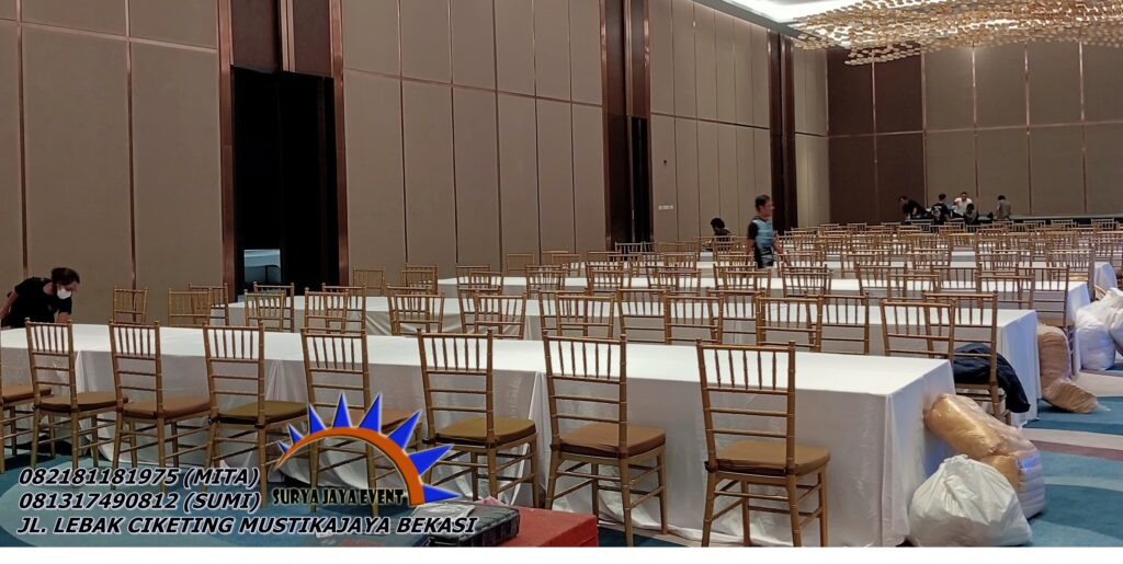 CV. SURYA JAYA EVENT merupakan perusahaan yang bergerak pesat dibidang jasa persewaan alat pesta lengkap termasuk meja kotak dan kursi tiffany dengan kualitas terbaik area jakarta.