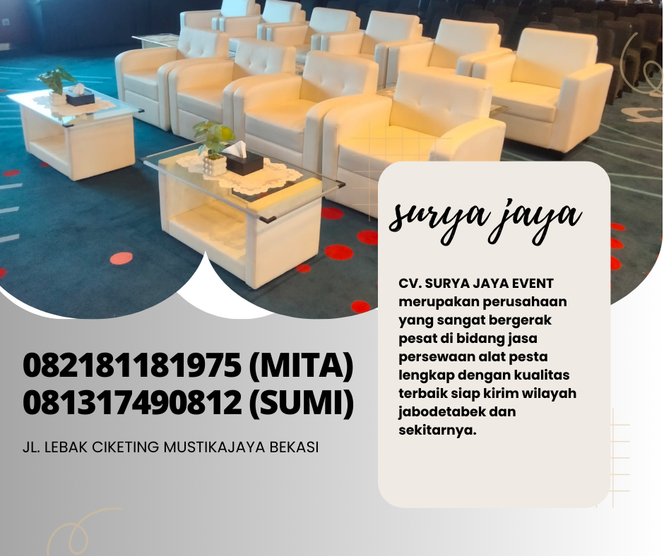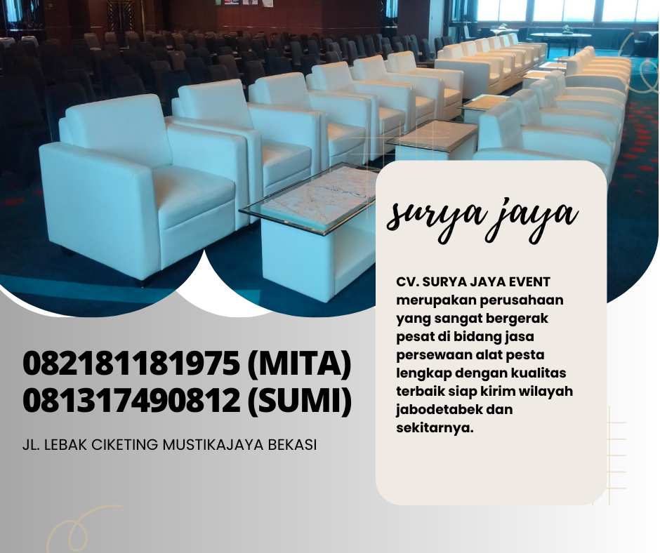 CV. SURYA JAYA EVENT merupakan perusahaan yang bergerak pesat dibidang jasa persewaan alat pesta lengkap termasuk sofa kotak minimalis dengan desain yang menarik siap kirim area jakarta dan sekitarnya.