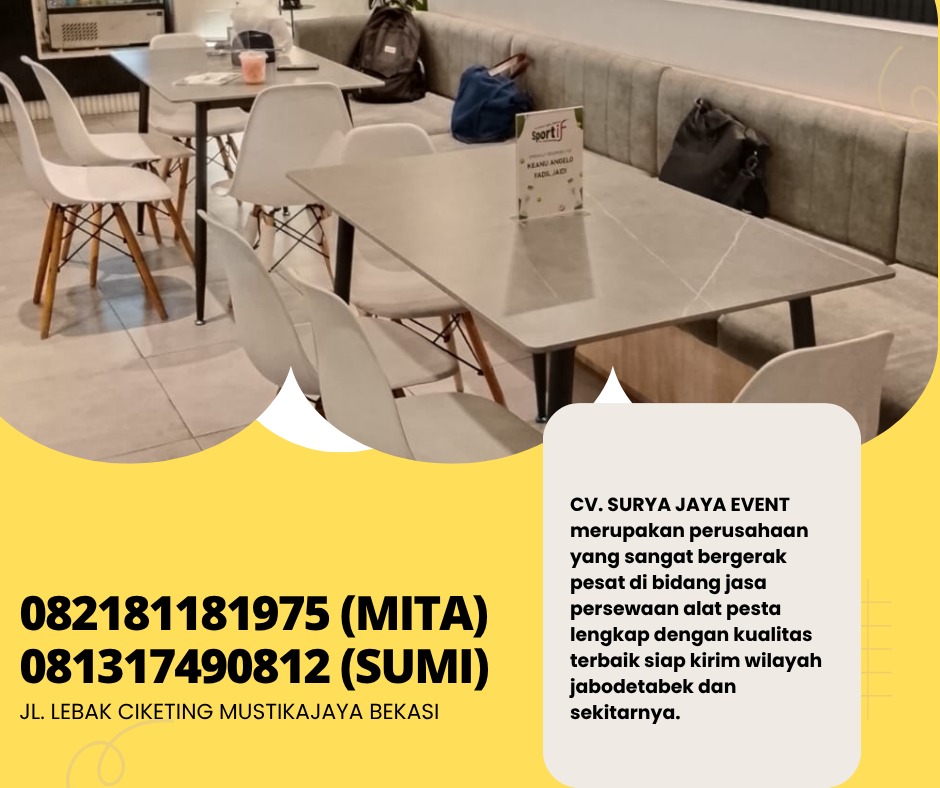 CV. SURYA JAYA EVENT merupakan perusahaan yang bergerak pesat dibidang jasa persewaan alat pesta lengkap termasuk kursi scramble dengan kualitas terbaik kami siap kirim area jakarta dan sekitarnya.